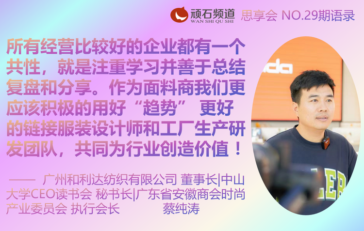 所有经营比较好的企业都有一个共性,就是注重学习并善于总结复盘和分享。作为面料商我们更应该积极的用好“趋势” 更好的链接服装设计师和工厂生产研发团队,共同为行业创造价值 !